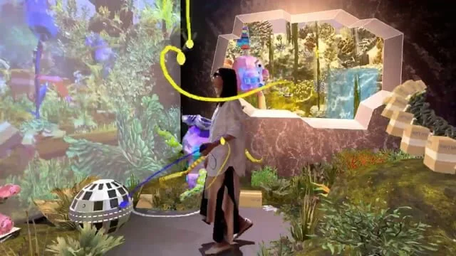 In Networked Ecosystem, natural phenomena have been replaced by digital and artificial systems as forces that drive development: Electricity/battery = sustenance, WIFI signals = nutrition, Lidar data = fire/heat. Data Organisms populate this digital ecosystem as native life forms in the form of bots, AI’s, and avatars. Visitors to this networked landscape develop new kinds of digital senses to experience data as environmental changes, and interact with the simulated world and each other in an ever-changing online environment.